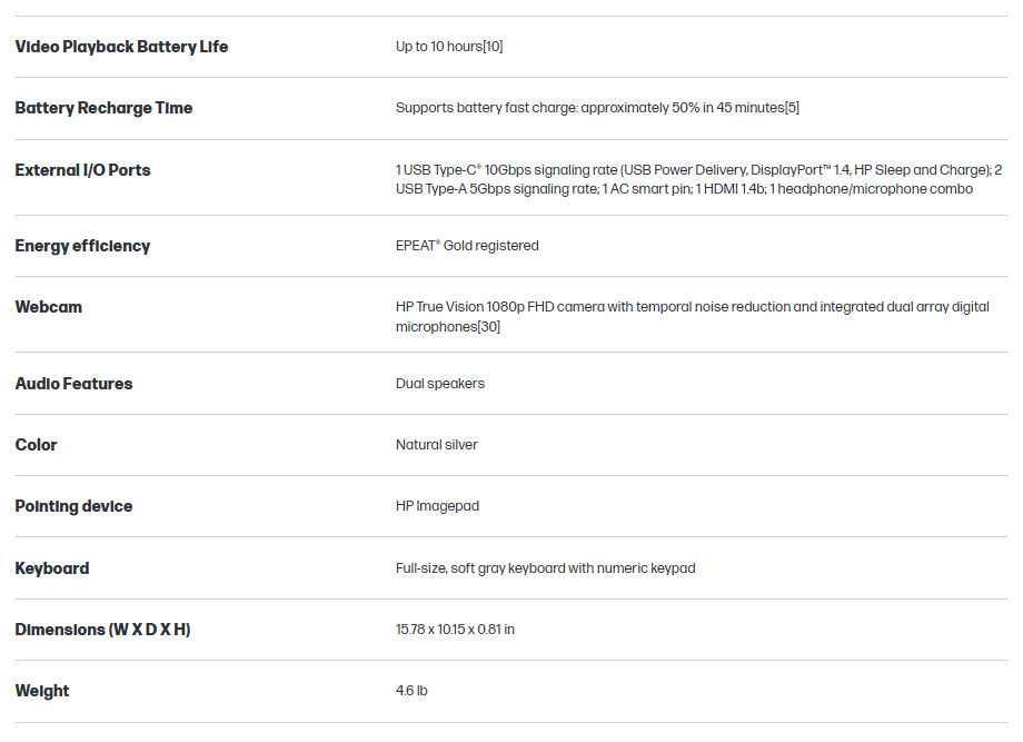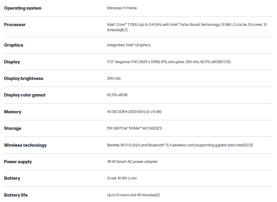 Impressive Full HD display: Enjoy brilliant graphics on a 17.3-inch display with 1920 x 1080 pixels, narrow bezels, and anti-glare technology for comfortable outdoor working. Fast charging and long battery life: With HP Fast Charge, your battery is charged to 50% in just 45 minutes, so you can focus on your tasks without having to rely on power outlets.