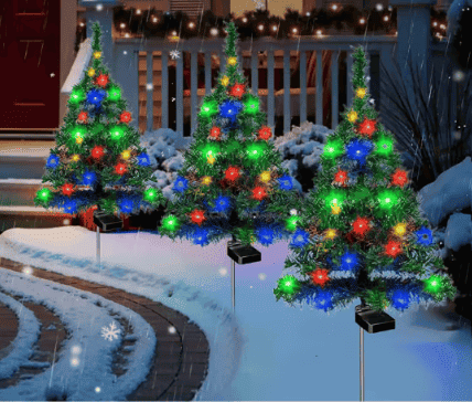 The outdoor solar garden lights with IP44 waterproof feature, even in bad weather work well and long lasting. The Xmas tree is solar energy powered, and upgraded solar panel,they can convert sun energy faster and more efficiently.