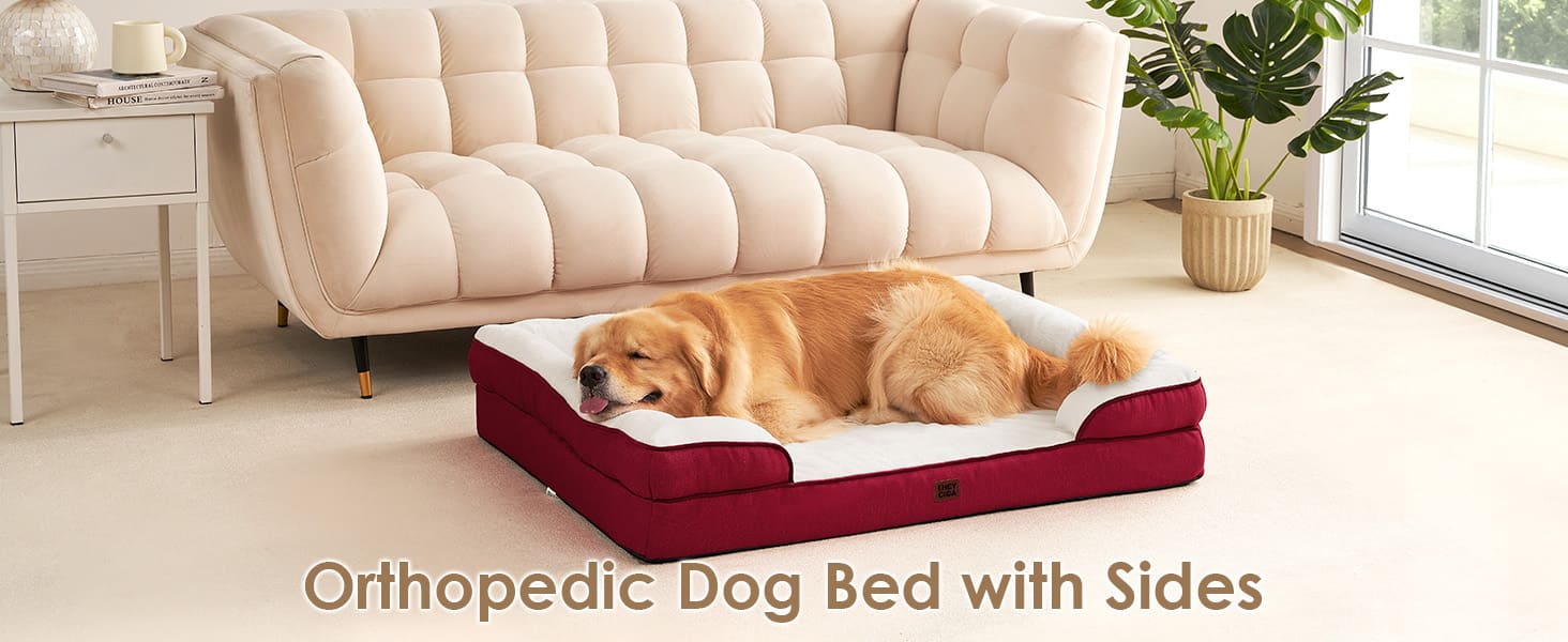 SOFA BED DESIGN: This bolster dog bed is designed with 4-sided bolsters to offer additional support for your pet’s neck and head, promoting restful sleep. The surrounding sides encourage your dog to snuggle in and enjoy a comfortable night's rest.