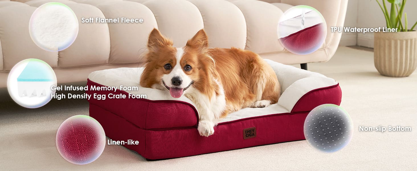 MEMORY FOAM: The EHEYCIGA orthopedic dog bed features memory foam and egg crate foam to provide even support and pressure relief. It offers a good balance of softness and support, making it particularly suitable for elderly dogs to alleviate joint pressure.