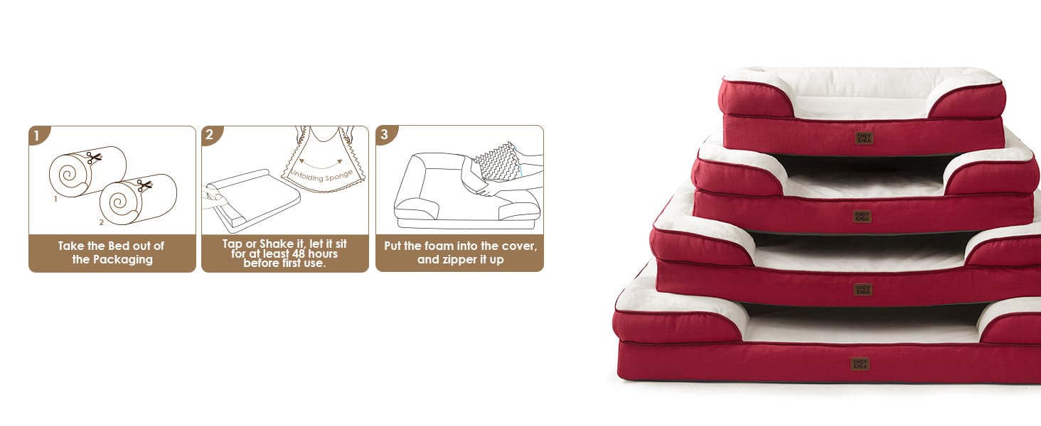 CARE INSTRUCTIONS: Our dog bed features a removable and washable cover with a zipper closure, making it easy to clean. Remove the foam insert, and the cover can be washed in a machine. Please note that the foam insert is not washable. Allow the bed to expand for 24-48 hours after unpacking.
