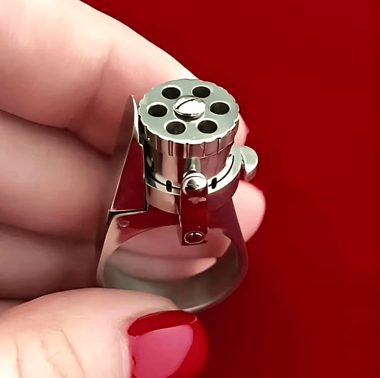The craftsmanship involved in designing our revolver is a testament to the beauty of meticulous handiwork. Every piece is intricately designed with exceptional detail, highlighting the unique character and charm of the miniature ring gun. Its compact and robust design mirrors the classic style of a traditional revolver, miniaturized to fit comfortably on your finger.