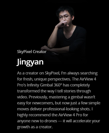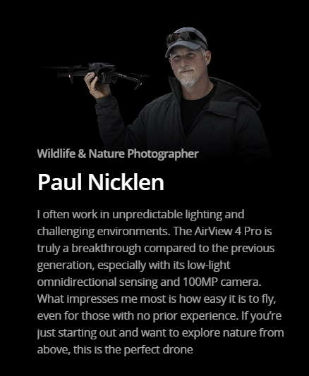 Powered by cutting-edge 2025 technology, the AirView Pro 4 makes professional aerial filming effortless. From breathtaking 6K footage to advanced safety features, it’s designed to help you fly with confidence and create without limits. Don’t wait — elevate your vision today with the AirView Pro 4.