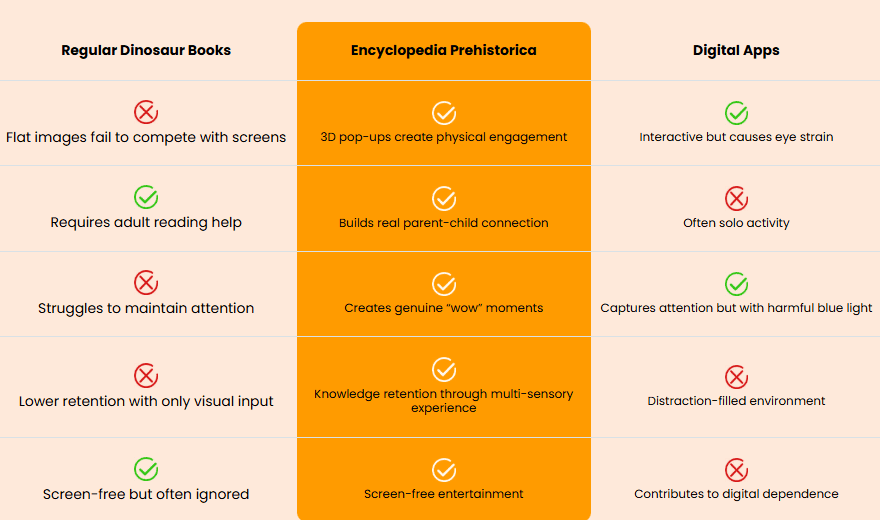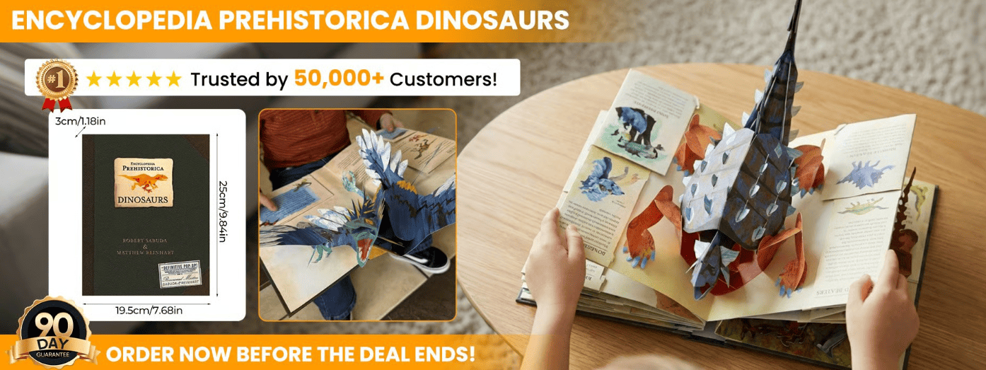 Regular children’s books can’t compete with screens because they don’t provide the sensory stimulation digital natives crave. The Encyclopedia Prehistorica uses precision-engineered paper mechanics that physically “leap” toward your child, hijacking the brain’s interest response normally reserved for digital content.