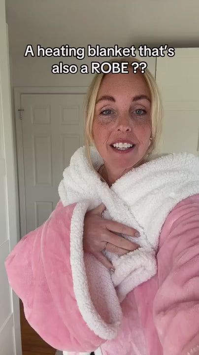 The SnuggleWarm HeatHug Blanket™ is a wearable one-size design (151–180 cm length, 111–140 cm width), roomy enough to fit most adults comfortably whether on the couch, recliner, or bed.
