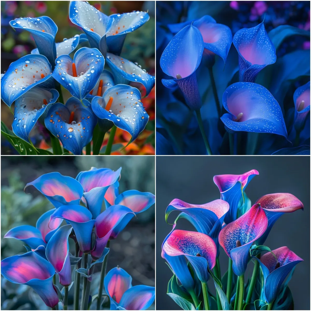 Looking to add a splash of vibrant color to your garden or home? The Aurora Calla (Zantedeschia 'Rainbow') is the perfect choice! With its stunning blooms that transition from deep blues and purples to striking pinks, oranges, and yellows, this flower is truly a visual masterpiece. Each petal unfolds to reveal a gradient of breathtaking hues, creating a kaleidoscope of colors that’s sure to capture attention.